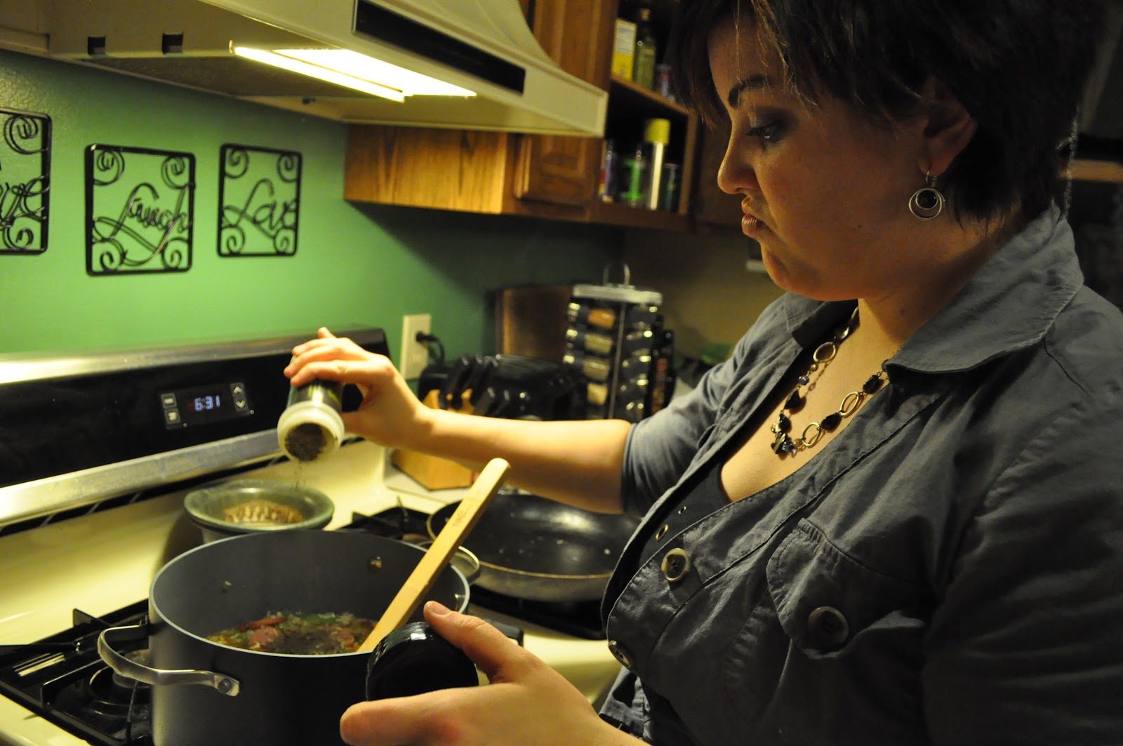 In honor of Mardi Gras, Jami and I (well, mostly Jami) cooked up a big Cajun/Creole feast! Josh and I came over to play with Harlee while Jami cooked up a big pot of jambalaya.  It was pretty darn spicy, but pretty darn good.